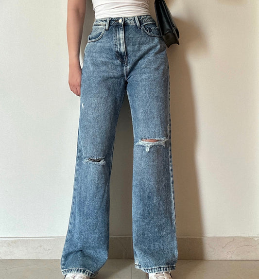 Monki Blue Wide Leg Ripped Jeans
