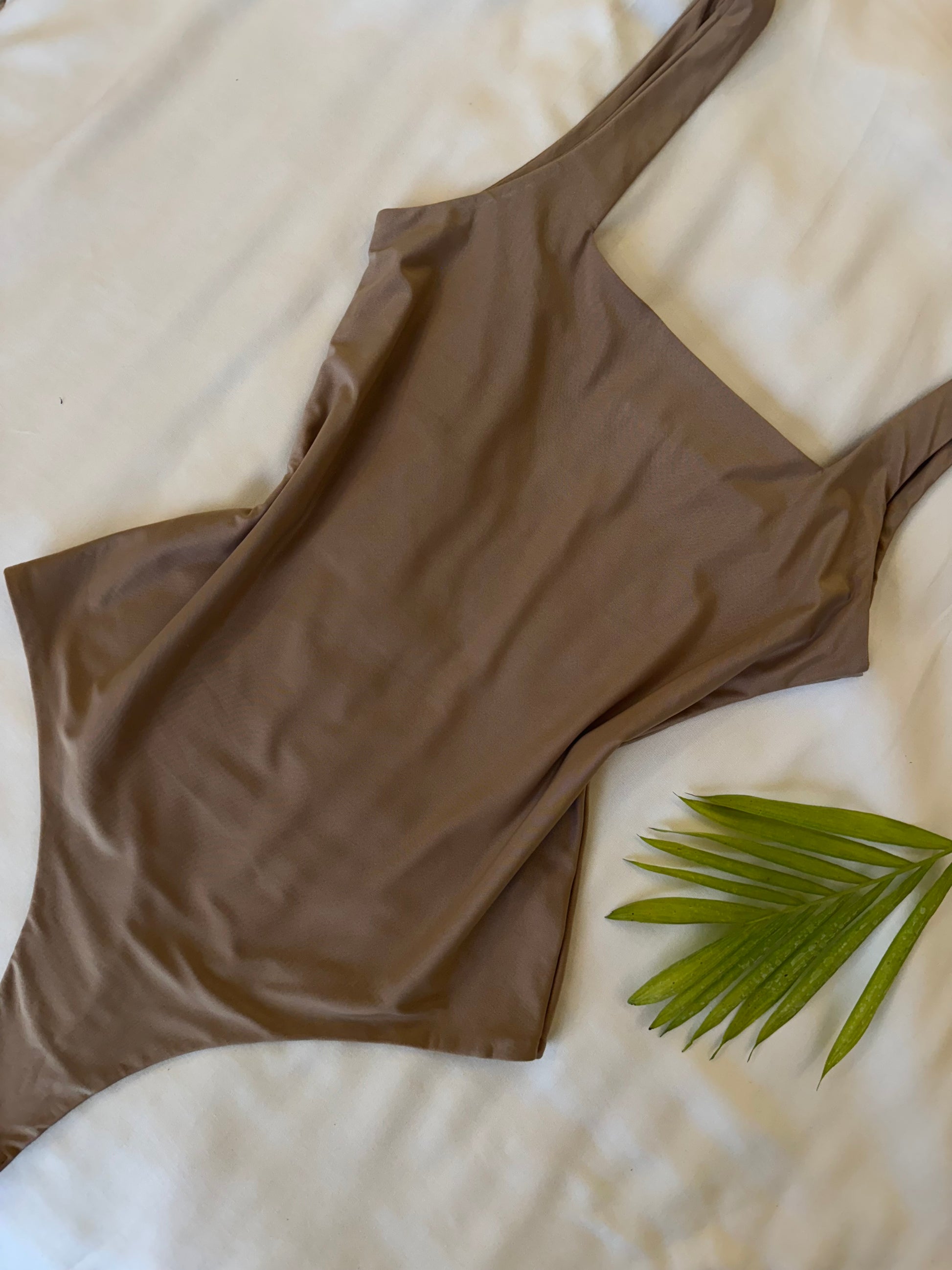 Gorgeous nude bodysuit with a slight sheen to the fabric.